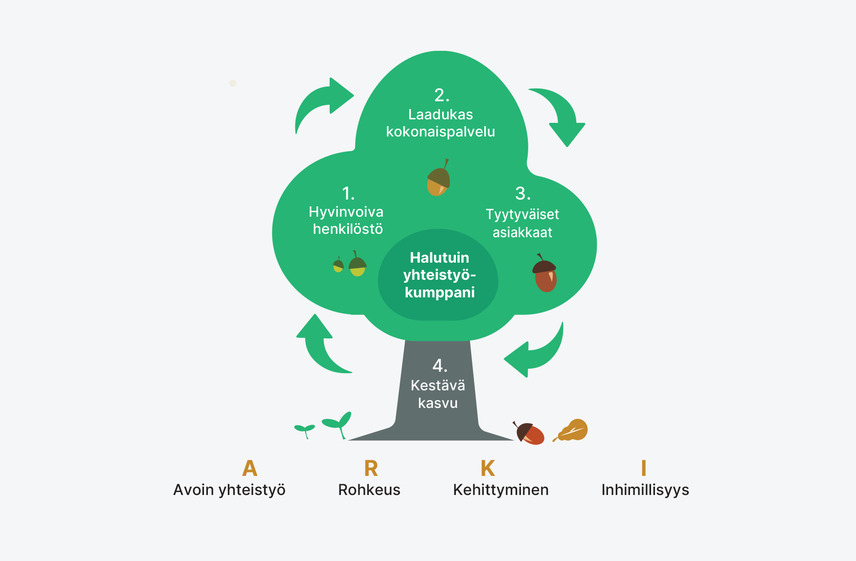 Projektin tavoitteena oli tehdä väline strategian juurruttamiseen henkilökunnalle ja asiakkaille. Tuoda strategia esiin inhimillisellä tavalla, jotta haluttu yhteisöllinen kulttuuri vahvistuu.